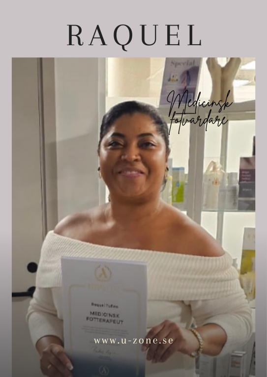 Jag heter Raquel Tufino och är diplomerad medicinsk fotvårdare, utbildad vid Axelsons Institute med examen i november 2025. Hos mig får du professionell medicinsk fotvård i en harmonisk miljö där omtanke, kvalitet och noggrannhet står i centrum.
